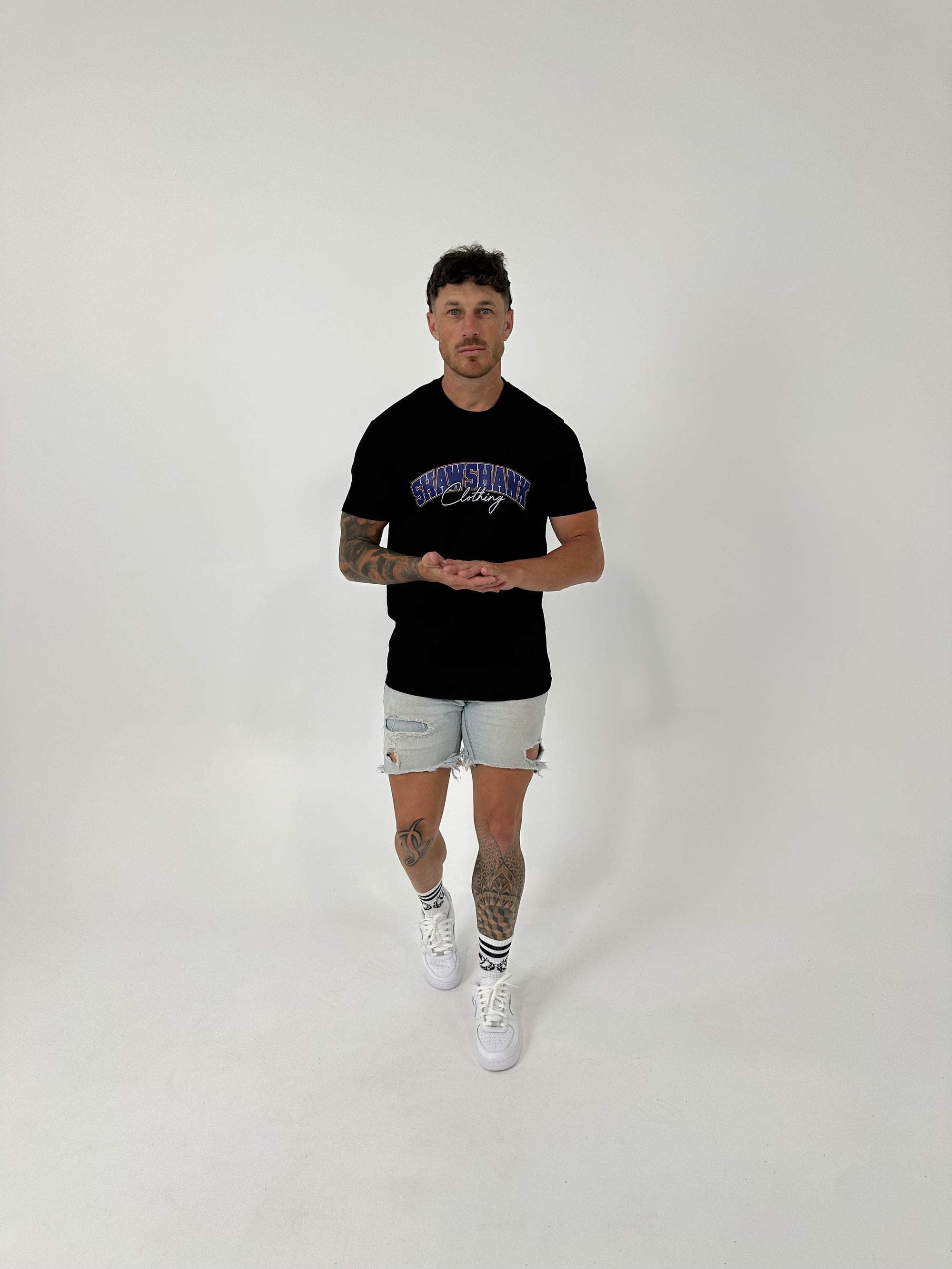 SHAWSHANK CLOTHING BLUE SIGNATURE PRINT T-SHIRT