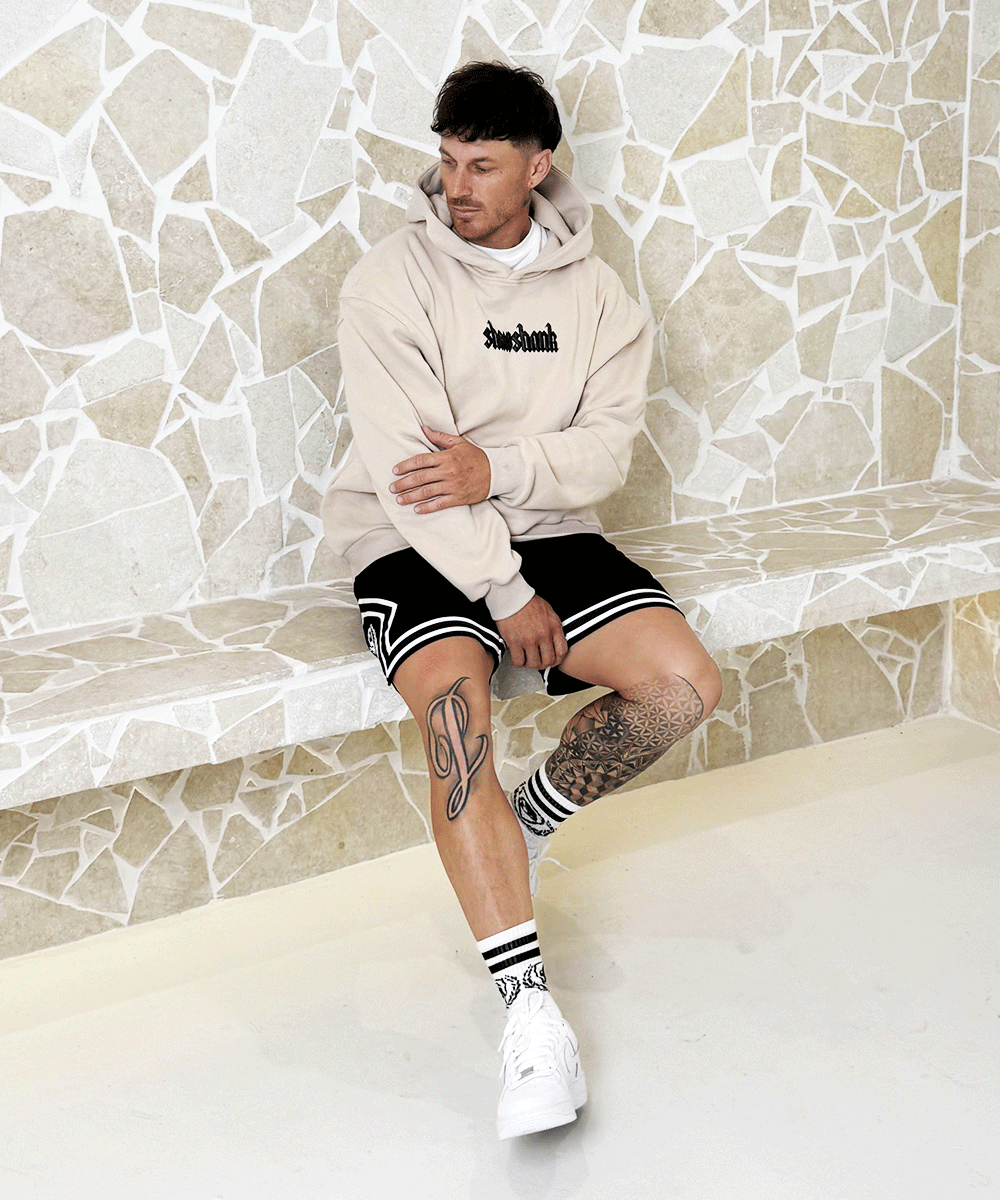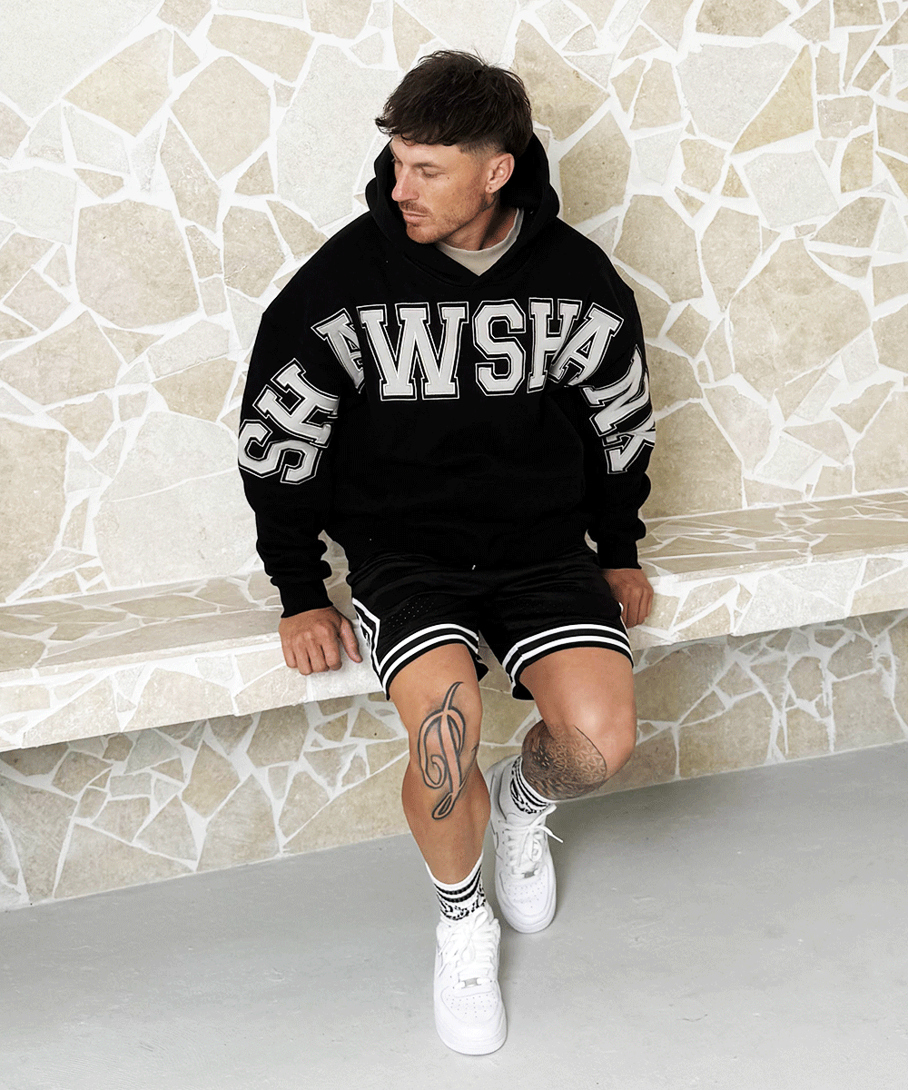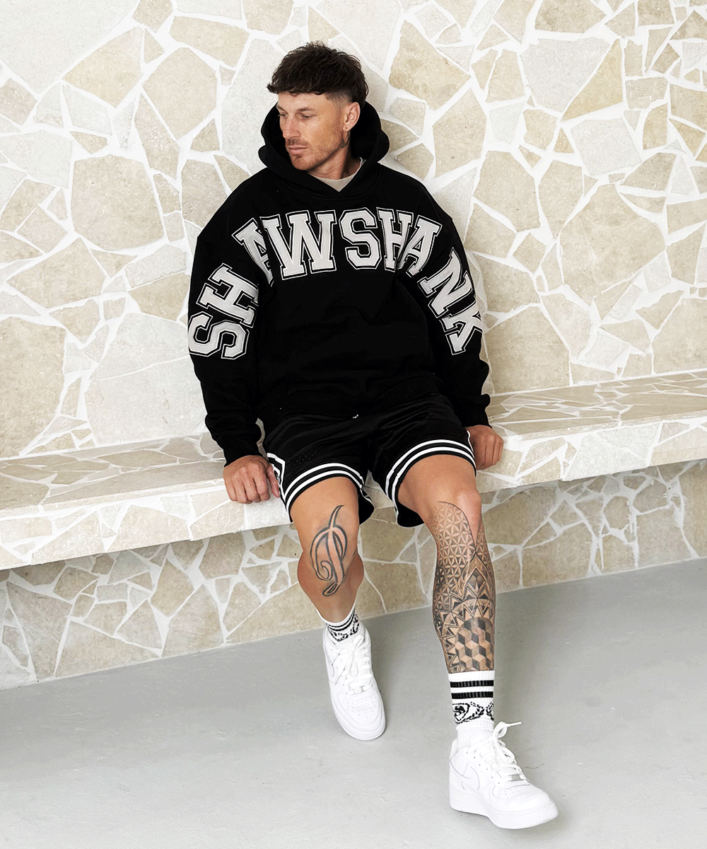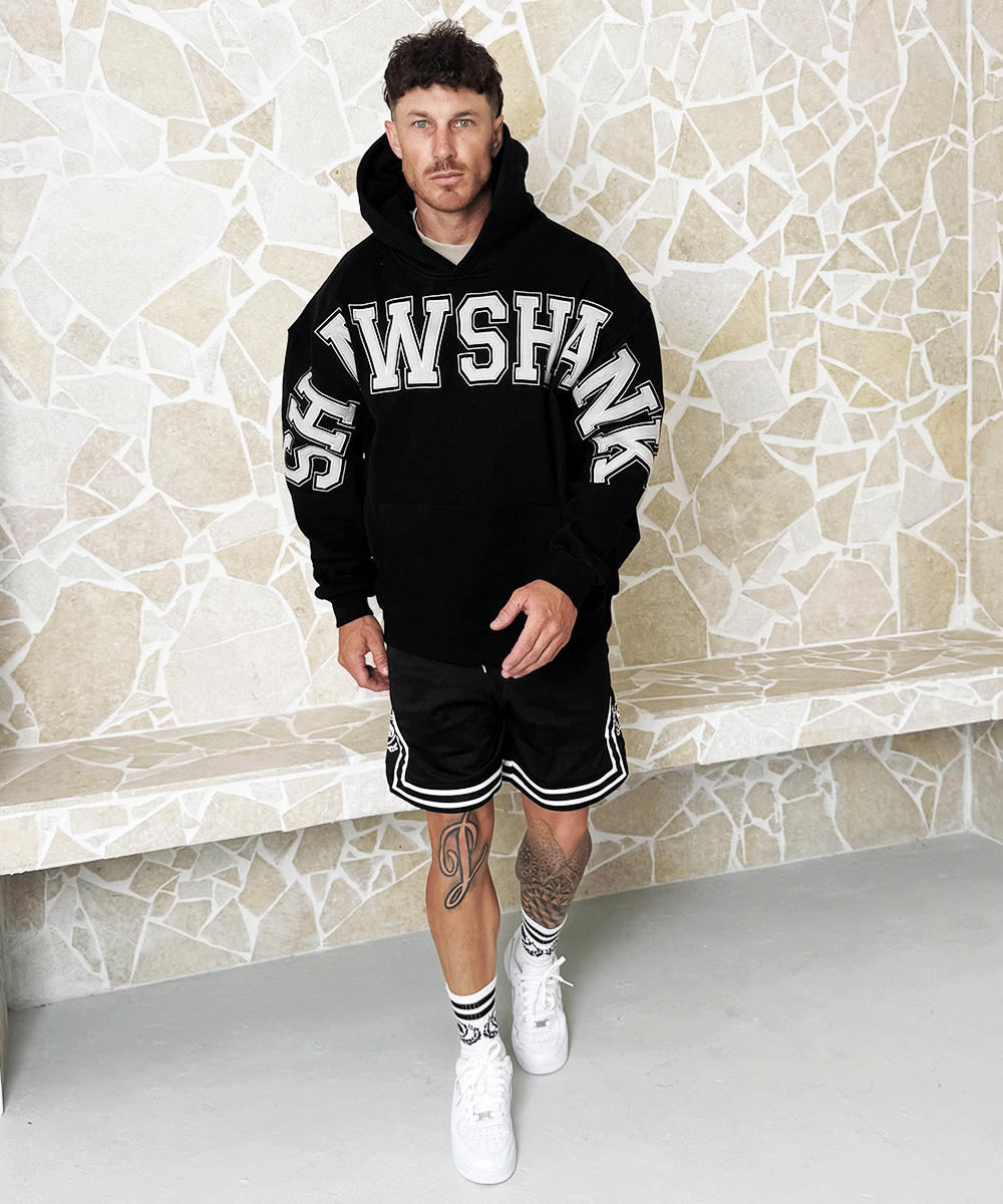 SHAWSHANK DESIGN embroided oversized hoodie and shorts set.