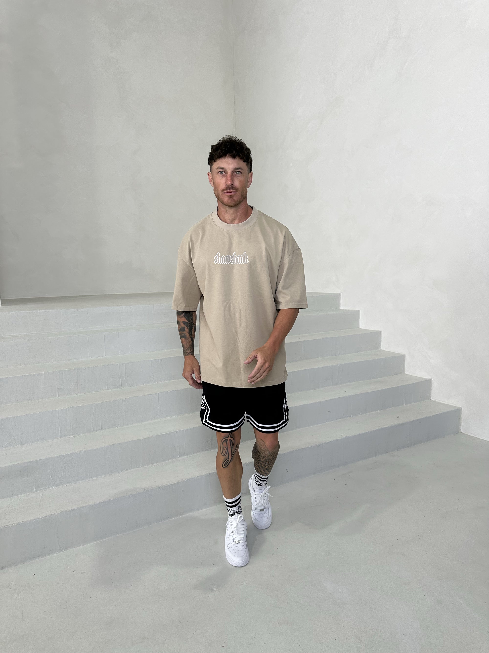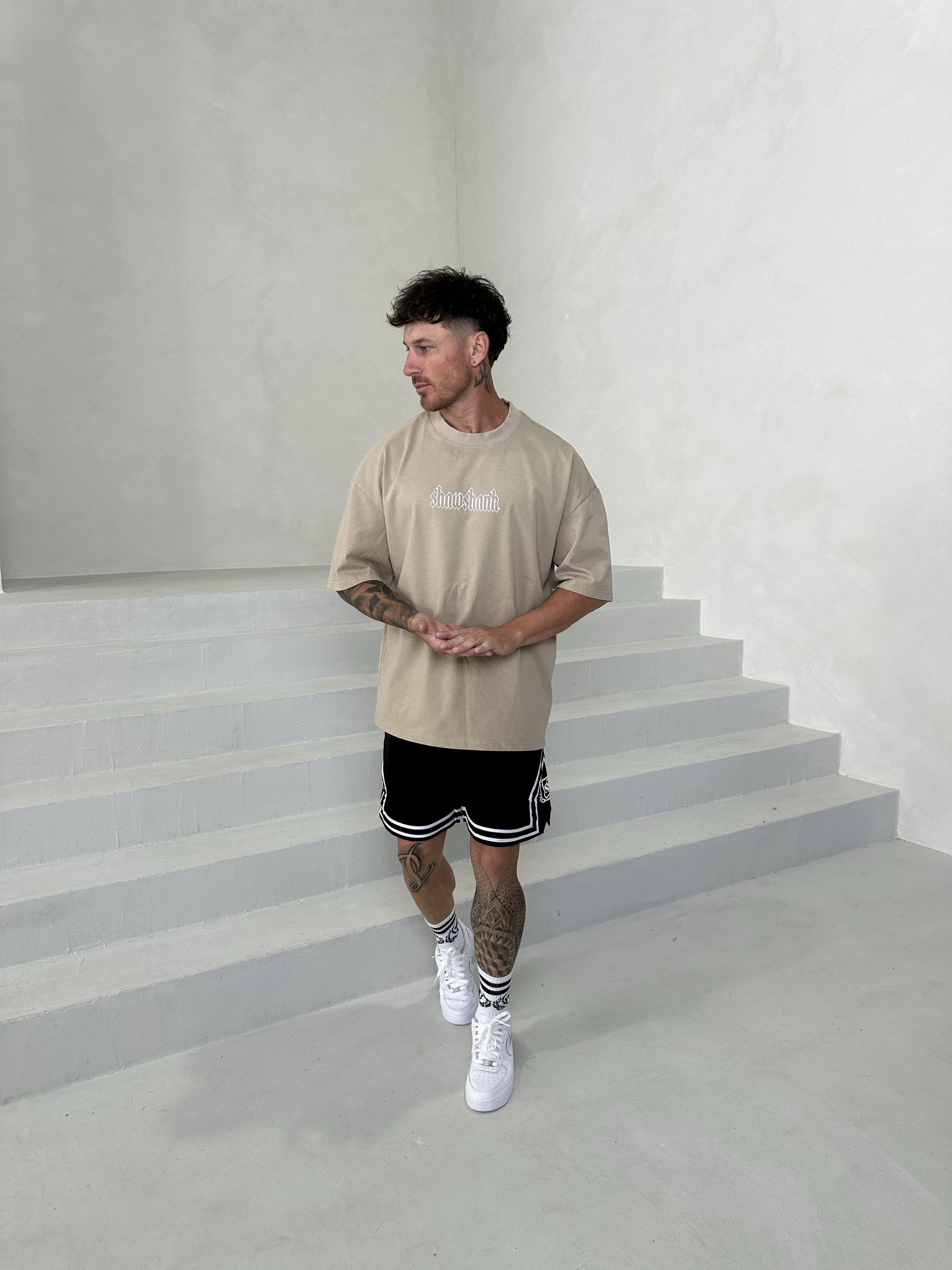 Men's Oversized Outline 'SHAWSHANK' Roman style print Heavy weight T-Shirt.